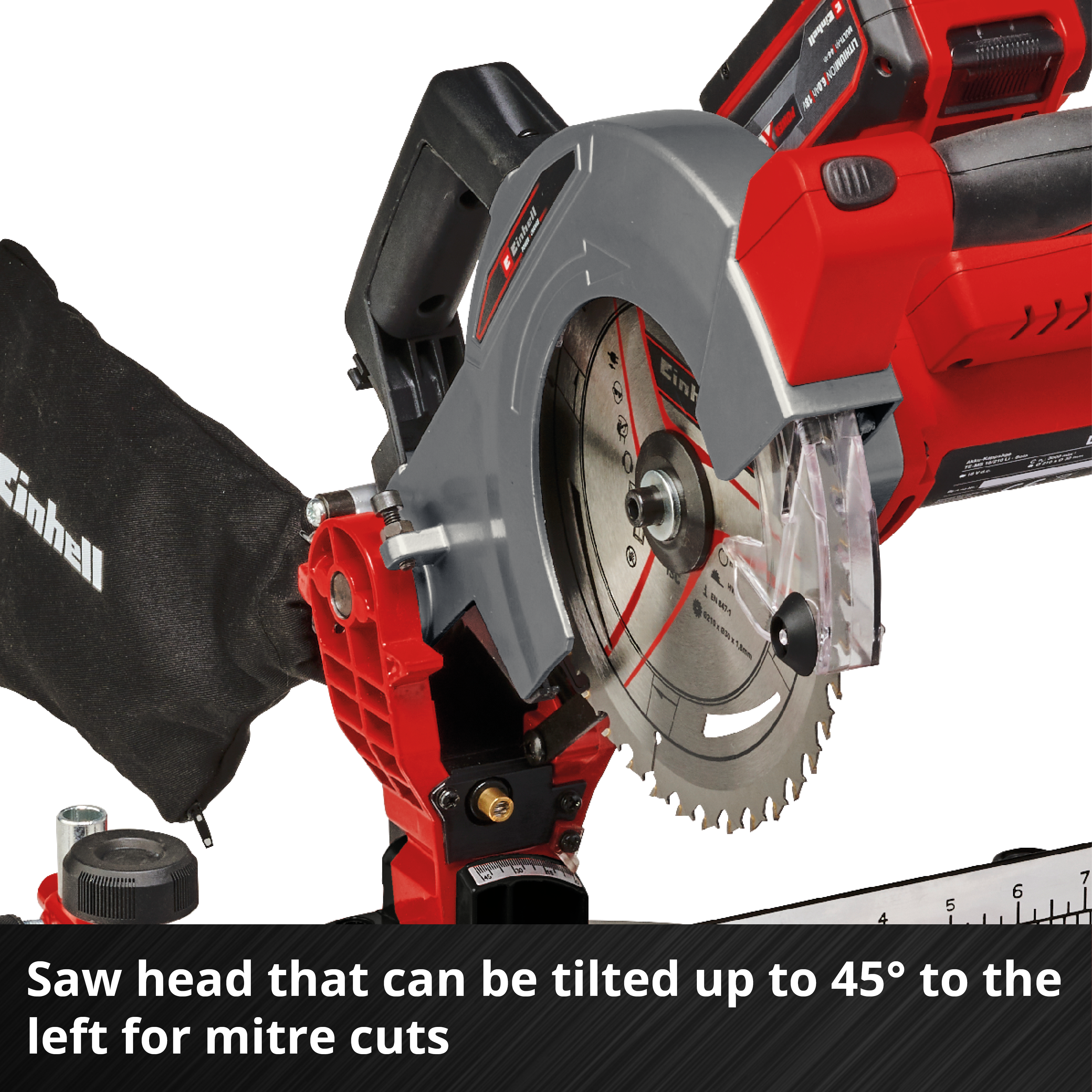 Время работы от аккумулятора просто фантастическое; у меня восемь инструментов Einhell, и это число продолжает расти. Я использую только аккумуляторы емкостью 4 Ач и выше; аккумуляторы меньшей емкости, как правило, больше не подходят, разве что 3 Ач для дрели, но не для чего-либо еще. Головку можно наклонять на 45°, а стол поворачивать на 45° – пользоваться им было действительно здорово.