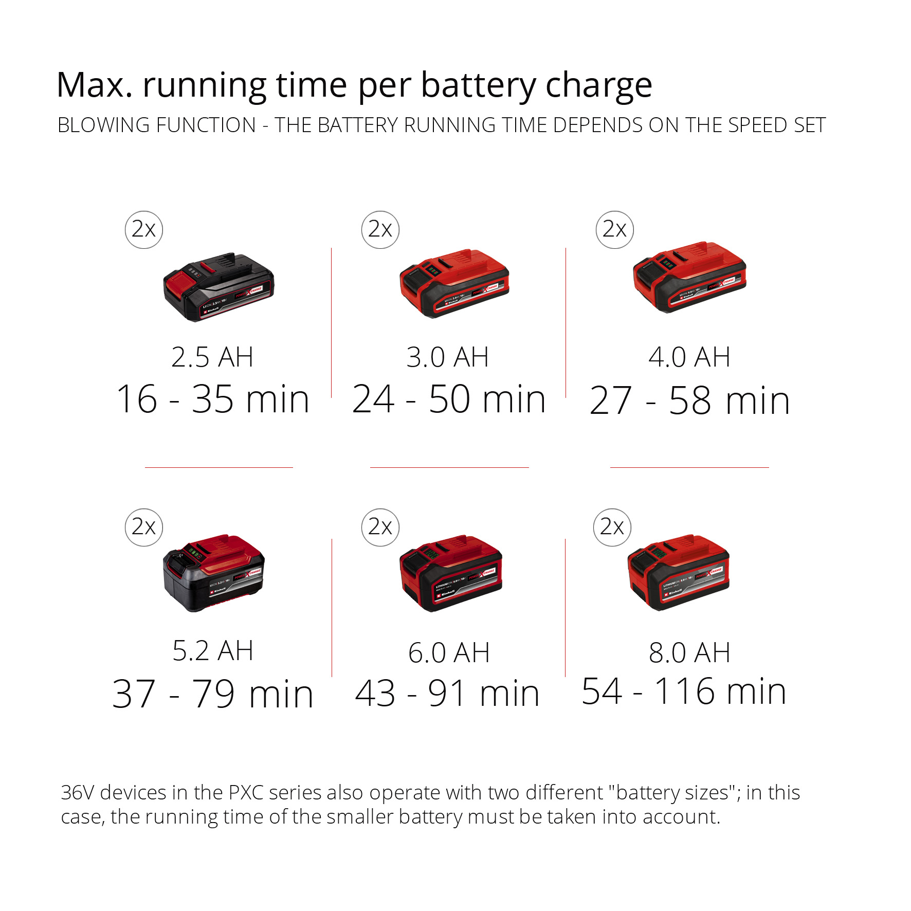 Макс. время работы на одном заряде Аккумуляторный улятора — функция выдува макс. скорость (2,6 Ач)