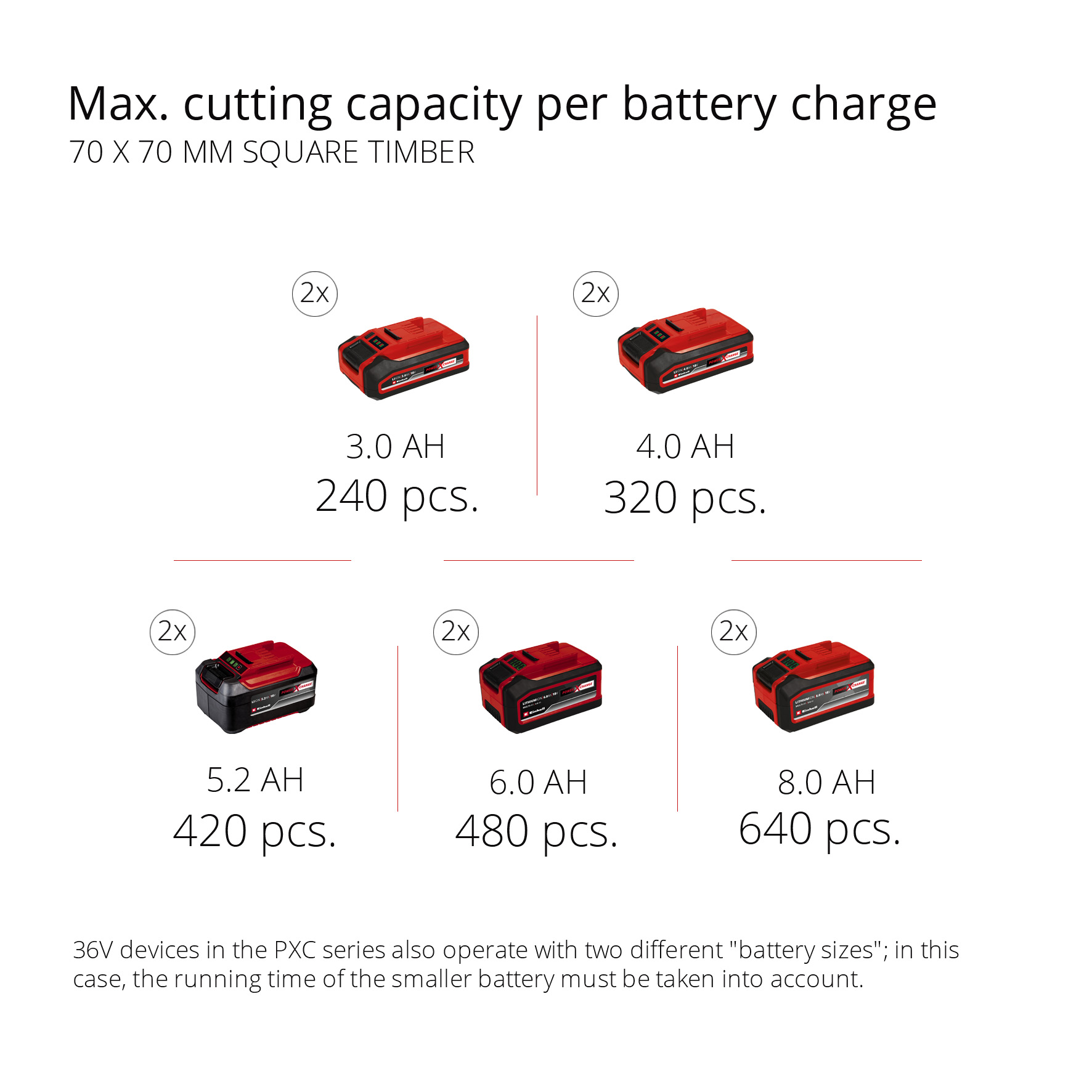 Макс. Производительность резки на одном заряде Аккумуляторный улятора — брус 70x70 мм (5,2 Ач)