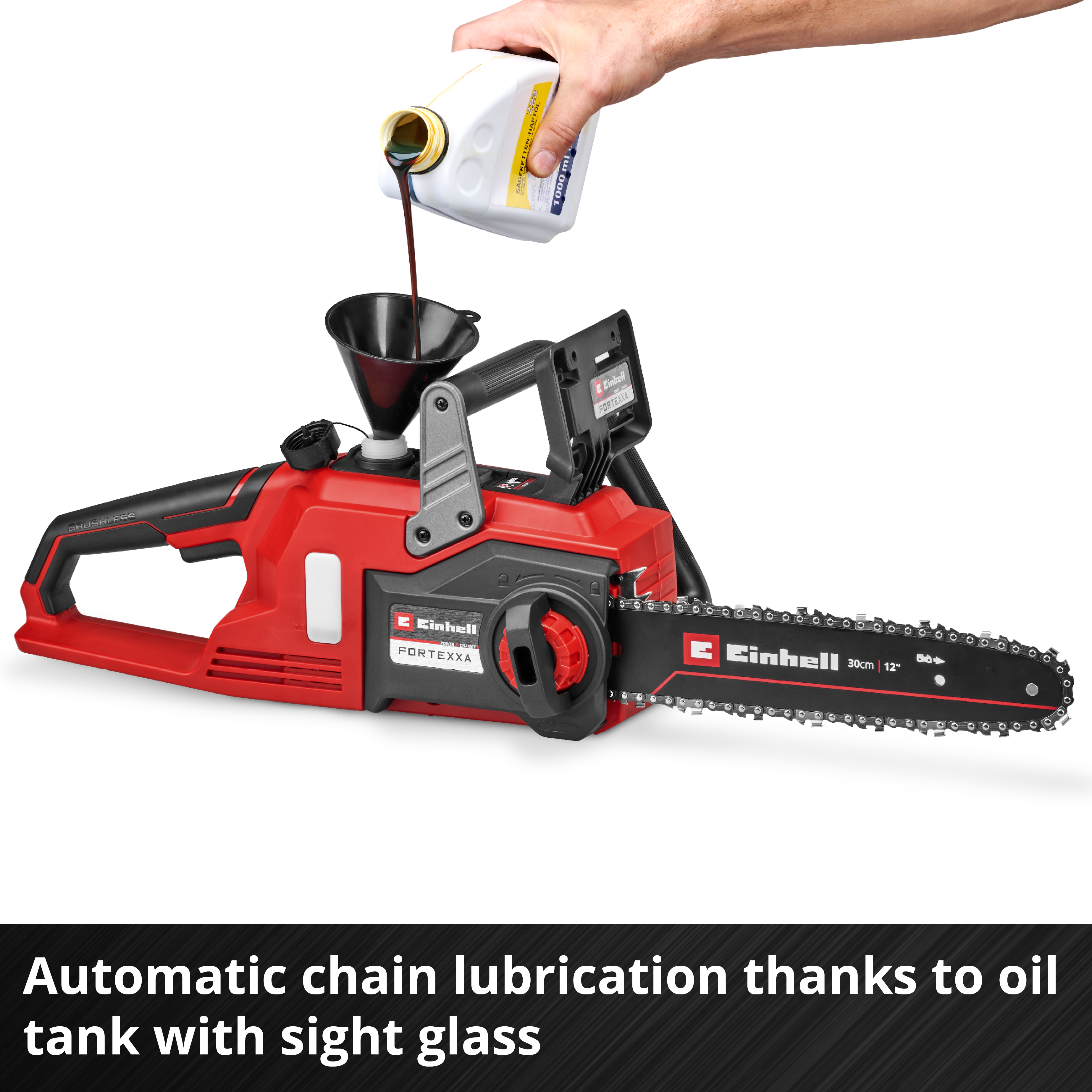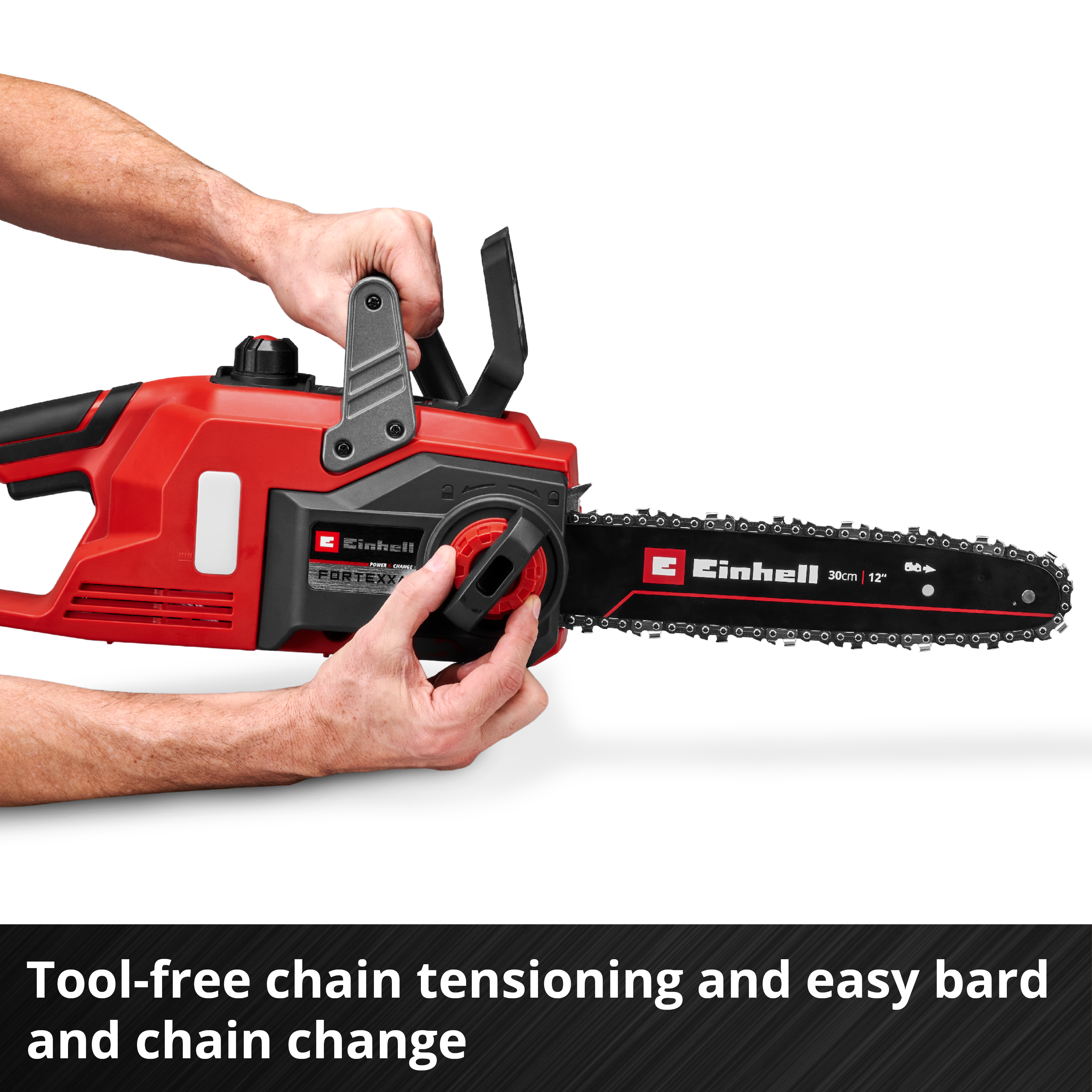 Аккумуляторная цепная пила Einhell FORTEXXA 18/30 — мощный представитель гибкого семейства Power X-Change. Как идеальный помощник для работы по дереву на густых ветвях фруктовых деревьев, густой листве и хвойных породах, FORTEXXA приводится в действие бесщеточным двигателем Einhell. Этот бесщеточный двигатель обеспечивает большую мощность и более длительное время работы, чем обычные двигатели с угольными щетками. После регистрации на сайте бесщеточный двигатель поставляется с 10-летней гарантией. Вместе с качественным лезвием и цепью даже толстые сучья и ветки вряд ли имеют что-либо общее с FORTEXXA. Беспроводная версия цепной пилы также обеспечивает наилучшие результаты при работе с рабочими и брусовыми древесиной, а также с дровами. Натяжение цепи, которое можно регулировать без инструментов, и столь же простая замена цепи облегчают управление. Уловитель цепи и защита от отдачи с мгновенным тормозом цепи обеспечивают безопасность во время использования, а автоматическая смазка цепи через большое отверстие для заливки масла для легкого ухода. Прочный когтевой упор выполнен из металла, эргономичная рукоятка оснащена мягкой накладкой для надежного и безопасного захвата. Для работы требуется Аккумулятор Power X-Change 18 В. Инновационная серия Power X-Change от Einhell отличается высокой производительностью и максимальной гибкостью: литий-ионные Аккумуляторы взаимозаменяемы без ограничений среди устройств серии Einhell system. Любой системный Аккумулятор можно использовать с любым устройством Power X-Change. Скорость цепи регулируется в зависимости от применения, т. е. можно переключаться между полной мощностью (8,9 м/с) и режимом Eco (6 м/с). Благодаря пониженной скорости цепи срок службы Аккумулятора увеличивается. В комплект поставки не входят Аккумулятор или зарядное устройство, но они доступны отдельно, например, как практичный стартовый комплект различной толщины.