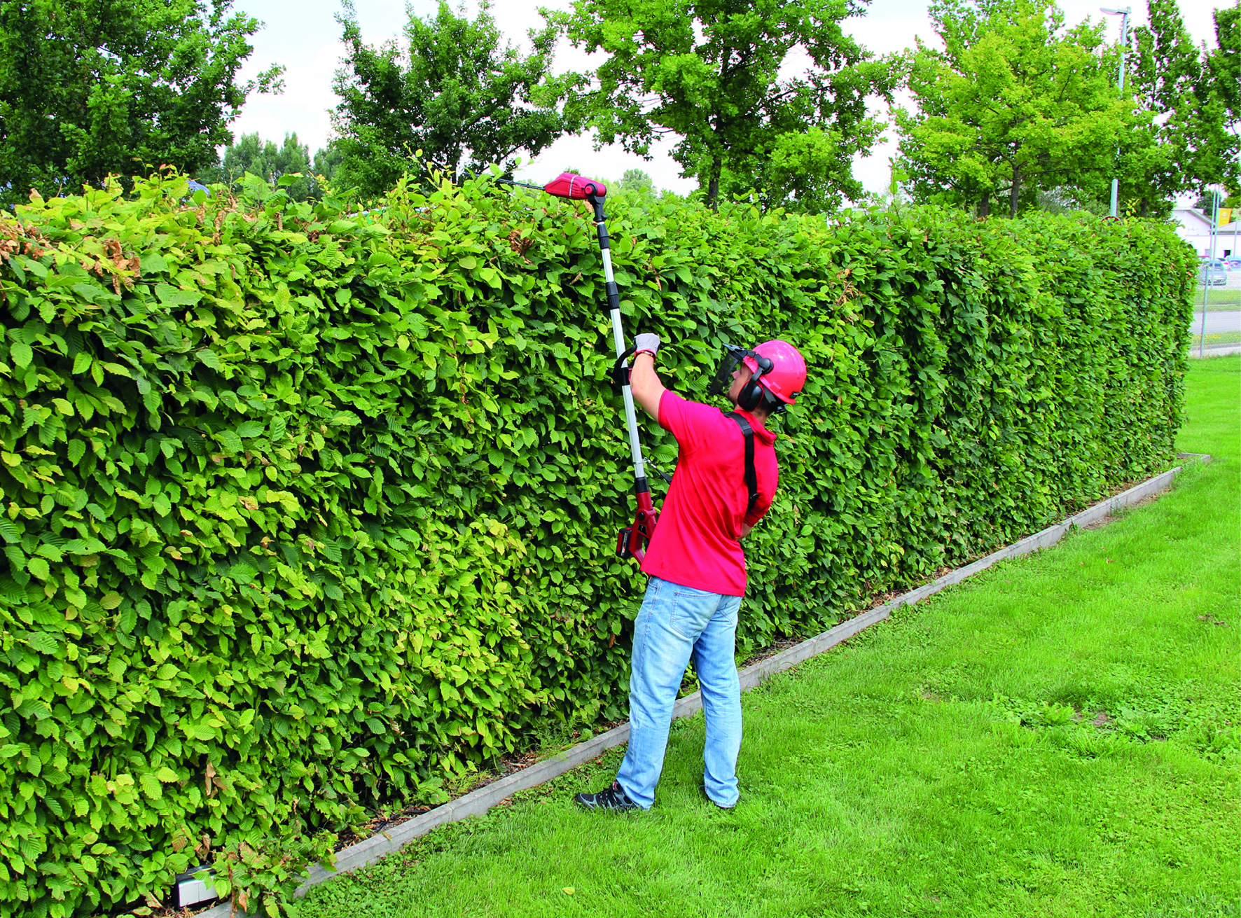 У меня несколько метров живой изгороди из граба, которую я подстригаю раз в год. До сих пор я всегда делала это вручную. Но это занимает довольно много времени. Я не могу так долго пользоваться своим другим электрическим кусторезом (проводным), потому что он довольно тяжелый. Особенно верхушка изгороди — это настоящая проблема, с которой я просто не могу справиться. Этот телескопический кусторез тоже не совсем легкий, но у него есть ремешок, и если я наклоню режущую головку на 90 градусов, я легко могу подстричь и верхушку. Одного аккумулятора хватает на удивление надолго. (Я использую аккумуляторы от своей газонокосилки Einhell.) Я женщина, уже немолода, и не совсем мускулистая. Но это работает — хотя на следующий день у меня немного болят предплечья ;-)